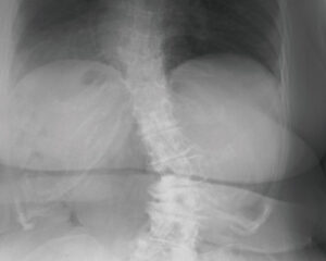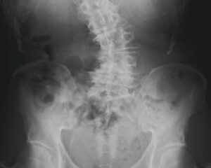 椎間板の変性が慢性化した最終ステージで、サブラクセーションが15年以上放置されている状態になります。椎間板の水分は放出され、椎間板スペースはほぼ消失、骨が自然癒合を起こし可動性が著しく減少してしまいます。上下の椎骨が更に接近し可動性が更に制限され、神経への負荷を避けるための防御反応により、カルシウムが沈着し更に補強を始めます。ケアをしても椎間板スペースや骨の変形には変化が見られませんが、神経機能が改善することは可能です。