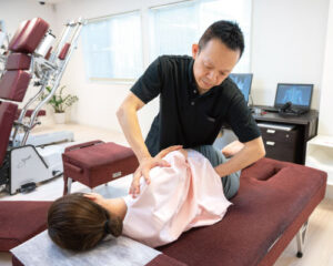 カイロプラクティックは「骨をボキボキする事」というイメージを持っている方が非常に多いですが大きな間違いです。カイロプラクティックはサブラクセーションをアジャストメントする事であって、アジャストメントの際にボキッという音が鳴る場合がありますが、それは目的ではなく過程にすぎません。矯正の時に「ボキッ」というクラック音は、関節滑液内に溶け込んでいる窒素ガスが気化し、骨と共振して聞こえる音です。骨の歪みが慢性化(癒着)している人や、ガスの溜まりにくい体質の人は、クラック音が小さく鳴らない事もあります。また、主原因であるサブラクセーションの骨が鳴りにくく、補正のズレ(カンパンセ-ション)は音が大きく鳴る傾向があります。クラック音が鳴ったから「骨が入った」とか「矯正が成功した」訳ではありません。ボキボキ音だけ鳴らすような治療院がYouTubeやSNSに出ていますが、あれはカイロプラクティックではなく整体です。ボキボキと骨を矯正して欲しいだけの方は当院へのご予約はご遠慮下さい。